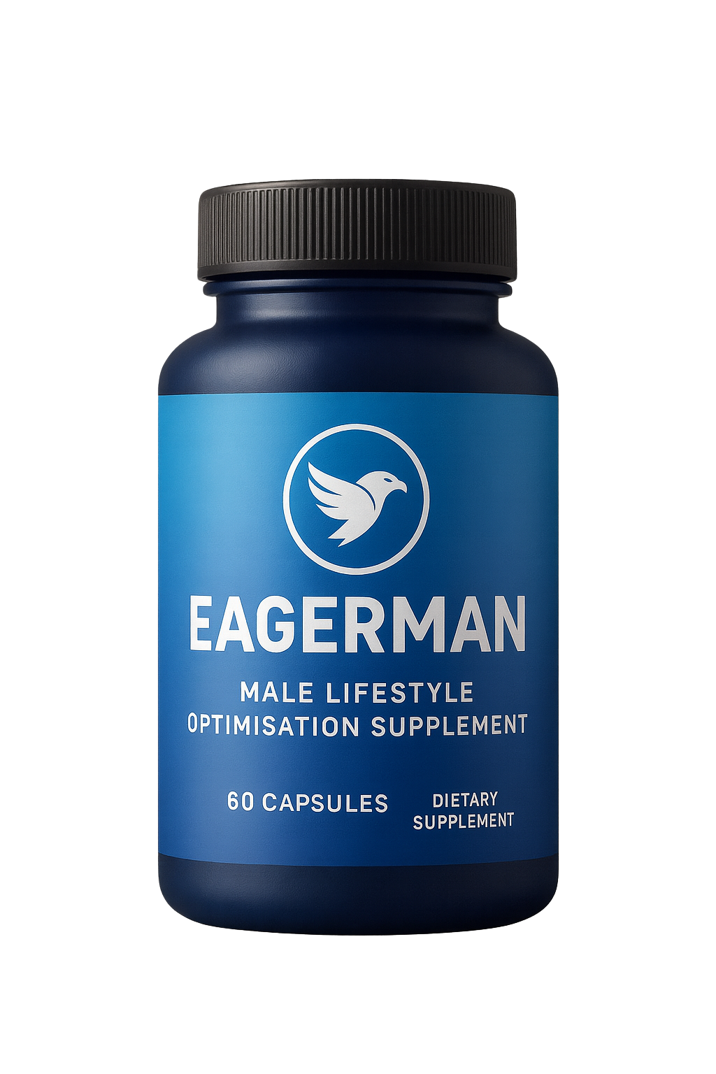 The Eagerman's male lifestyle optimisation Supplement is a premium natural formula designed to alleviate every area of your life whether it’s in the gym where you need muscle recovery, at work where you need energy and focus, or even while you’re sleeping where improved sleep quality helps you feel ready — The Eagerman’s core focus is elevating the male lifestyle.